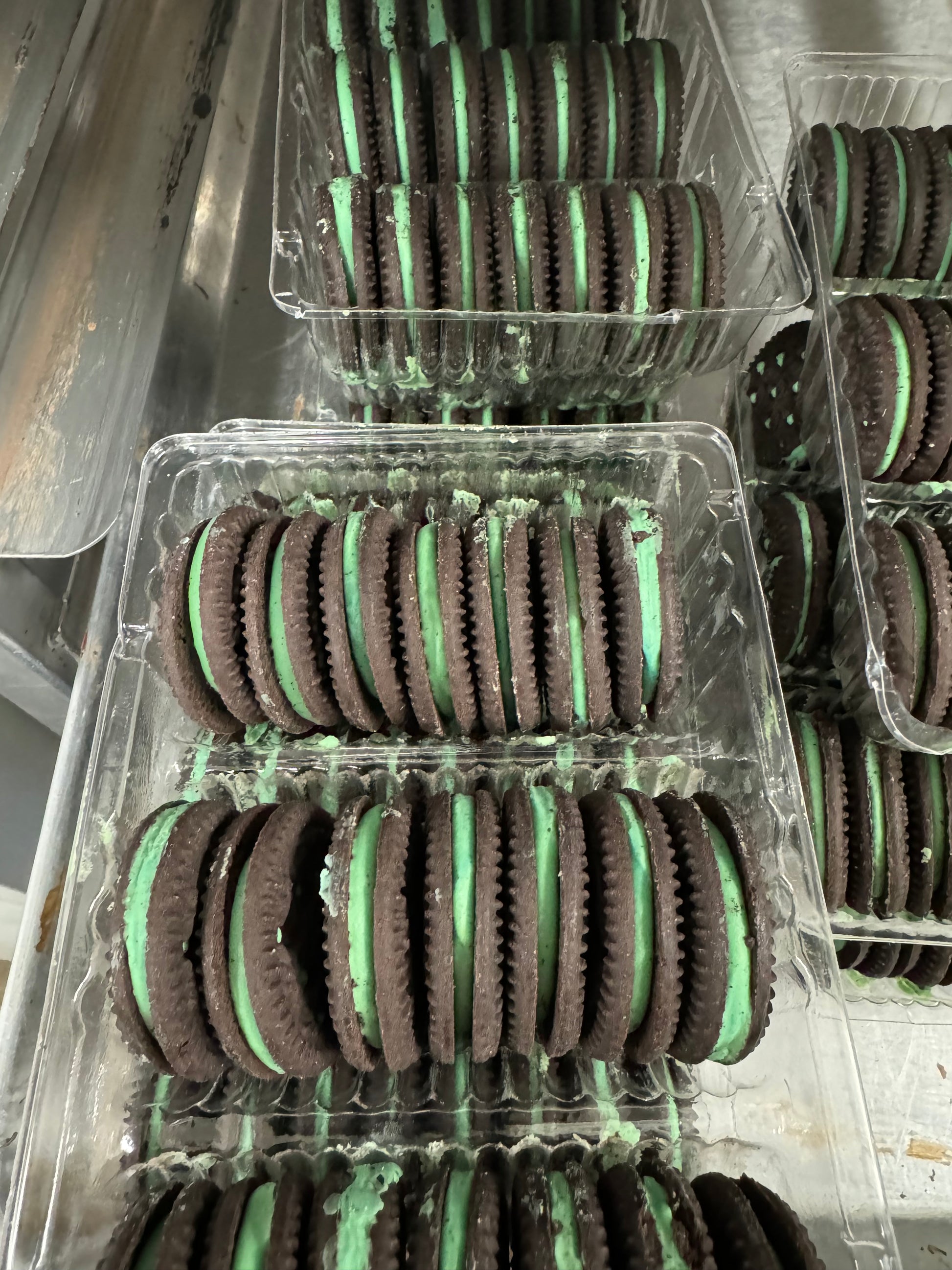 Chocolate covered Sandwich Cookie w/Mint Filling