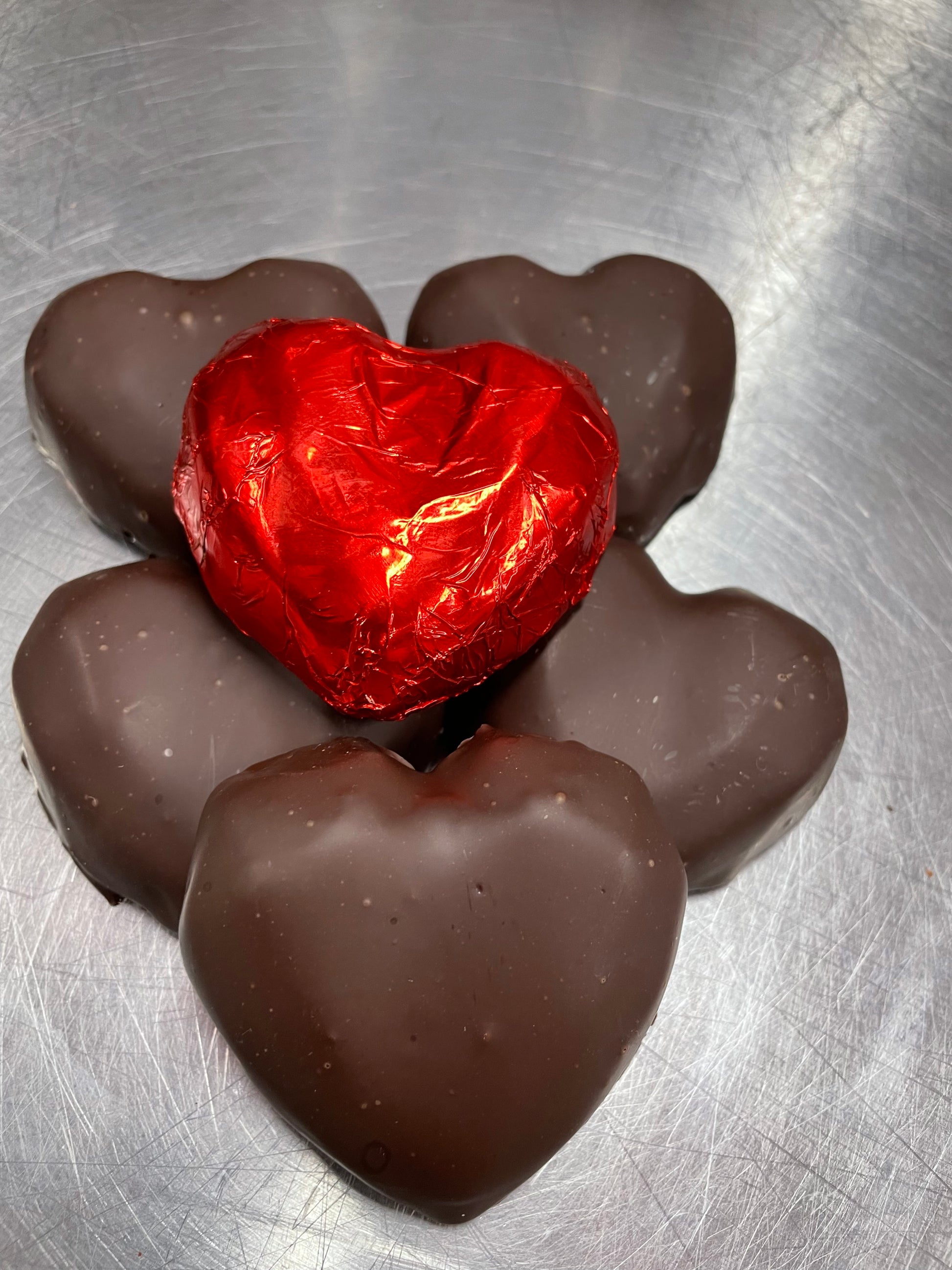 This truffle makes us want to sing the song "how big is your love" - it's a big (just over 2oz each) of rich chocolatey delight! It's our classic raspberry truffle ganache studded with crispy raspberry pieces throughout - definitely a treat to share with anyone you love. Or just a big "I love you" to yourself is fine too - that should happen every day!
